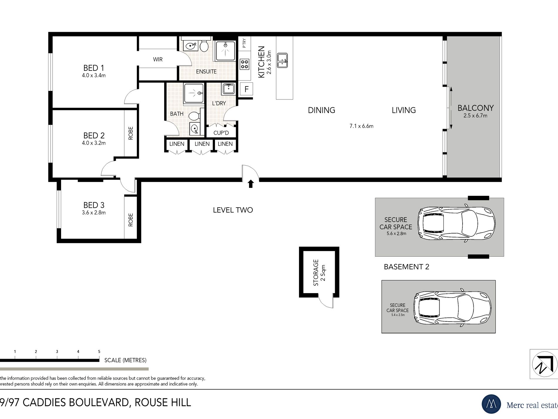 Basement security car spaces and storage cage